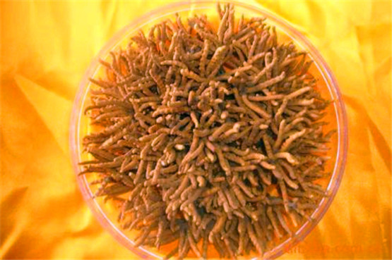 冬蟲夏草,中藥名。為麥角菌科植物冬蟲夏草菌Cordyceps sinensis( BerK.)Sacc.寄生在蝙蝠蛾科昆蟲幼蟲上的子座及幼蟲的尸體的復合體。具有補腎益肺,止血化痰功效。主治陽痿遺精、腰膝酸痛、久咳虛喘、勞嗽痰血。